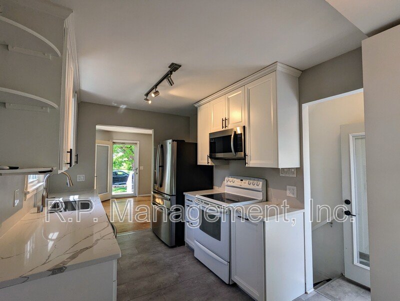 Available now! Newly remodeled 3bdrm 2bath rambler across the street from the park. Main level with natural hardwood floors living, dining, two bedrooms and bath. Kitchen has newer stainless steel appliances new cabinets, quartz counter tops and a breakfast area. Lower level large family room, 3rd bedroom, bath and new washer/dryer. This property has new windows, a fully fenced in backyard, a patio for entertaining and 1 car detached garage with remote. Great location, close to major shopping, grocery and restaurants.